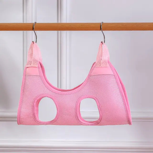 Introducing the Pet Grooming Hammock – the perfect way to keep your pet safe and comfortable while trimming, cutting nails, and bathing. Constructed from breathable cloth material, it is designed to be comfortable for pets and does not hurt their skin. It hangs over them completely covering four corners and their head which allows a perfect mount that is pain-free. The large contact area of the cloth ensures your pet will not be restricted or feel uncomfortable when hanging in the hammock. It provides all the relaxation they need while they are being groomed without any strain or stress. Get your Pet Grooming Hammock today and make grooming time easier than ever!