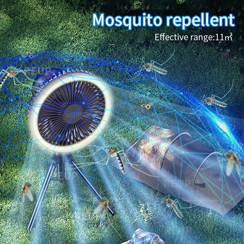 A portable camping fan is a versatile device designed to provide cooling and air circulation during outdoor activities such as camping, hiking, or picnics. The foldable tripod design ensures stability and portability, allowing you to easily set up the fan wherever you need it. This feature is especially useful when camping or in situations where you don't have a flat surface to place the fan on. The fan offers three adjustable wind speeds, allowing you to customize the airflow to your liking. Additionally, it has a low noise level, generating sound below 20 decibels, ensuring a quiet and peaceful environment.