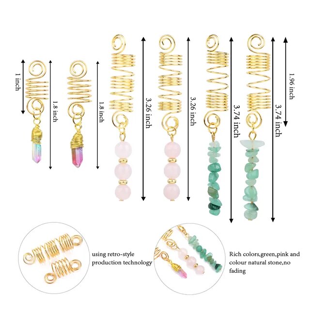 This stone hair jewelry seems to combine natural elements (stone crystals) with geometric design (hexagonal columns) and possibly includes a decorative crystal butterfly detail. It caters to women with a specific focus on those with braids, dreadlocks, or similar hairstyles. The use of natural materials and the combination of aesthetics and functionality make it a unique accessory for hair adornment.