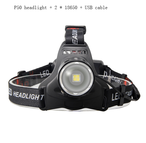 P50 headlight + 2 * 18650 + USB cable